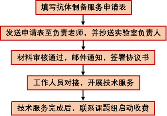 中心抗体技术平台目前提供小鼠、兔多克隆抗体制备技术服务,可以满足实验室针对特殊蛋白制备专属多克隆抗体,以供实验室完成检测试验。目前有技术人员1名。